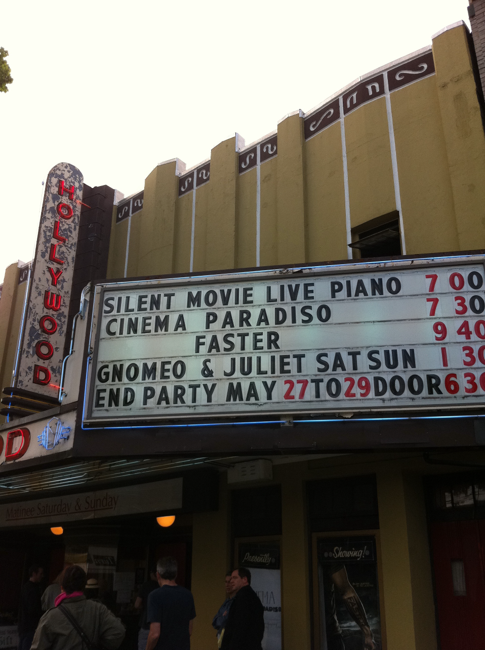 On the final night of the Hollywood, May 29, 2011, the double header was Cinema Paradiso and Faster, two completely different movies and we wouldn’t have any other way. Mr. Gray explained the history of the theatre and how it has been in the Fairleigh family since it opened its doors back in the 30s. Songs were sung and stories shared to pay tribute to the Hollywood and the Fairleigh family and then a classic Buster Keaton silent film was shown with a live and original piano score accompanying it. I had never seen a silent film before and it was a hoot and a treat to have that live piano there.