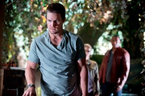 Arrow — “City of Heroes” — Image AR201b_0009b — Pictured (L-R): Stephen Amell as Oliver Queen Emily Bett Rickards as Felicity Smoak, and David Ramsey as John Diggle — Photo: Cate Cameron/The CW — © 2013 The CW Network. All Rights Reserved.