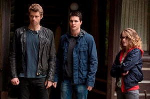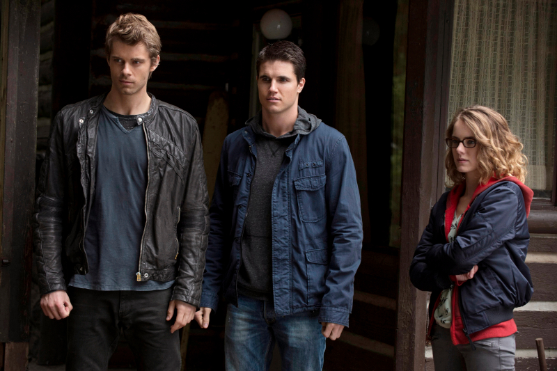 The Tomorrow People — “Thanatos” — Image: TP108a_0093 — Pictured (L-R): Luke Mitchell as John Young, Robbie Amell as Stephen Jameson, and Laura Slade as Irene Quinn —