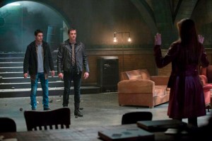 The Tomorrow People — “Enemy of My Enemy” — Image Number: TP115b_0037.jpg — Pictured (L-R): Robbie Amell as Stephen, James Mackay as Julian and Peyton List as Cara —