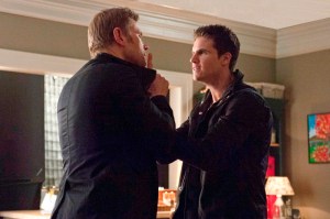 The Tomorrow People — “Smoke and Mirrors” — Image Number: TP118a_0194.jpg — Pictured (L-R): Luke Mitchell as John and Robbie Amell as Stephen — Photo: Cate Cameron/The CW — © 2014 The CW Network, LLC. All rights reserved.