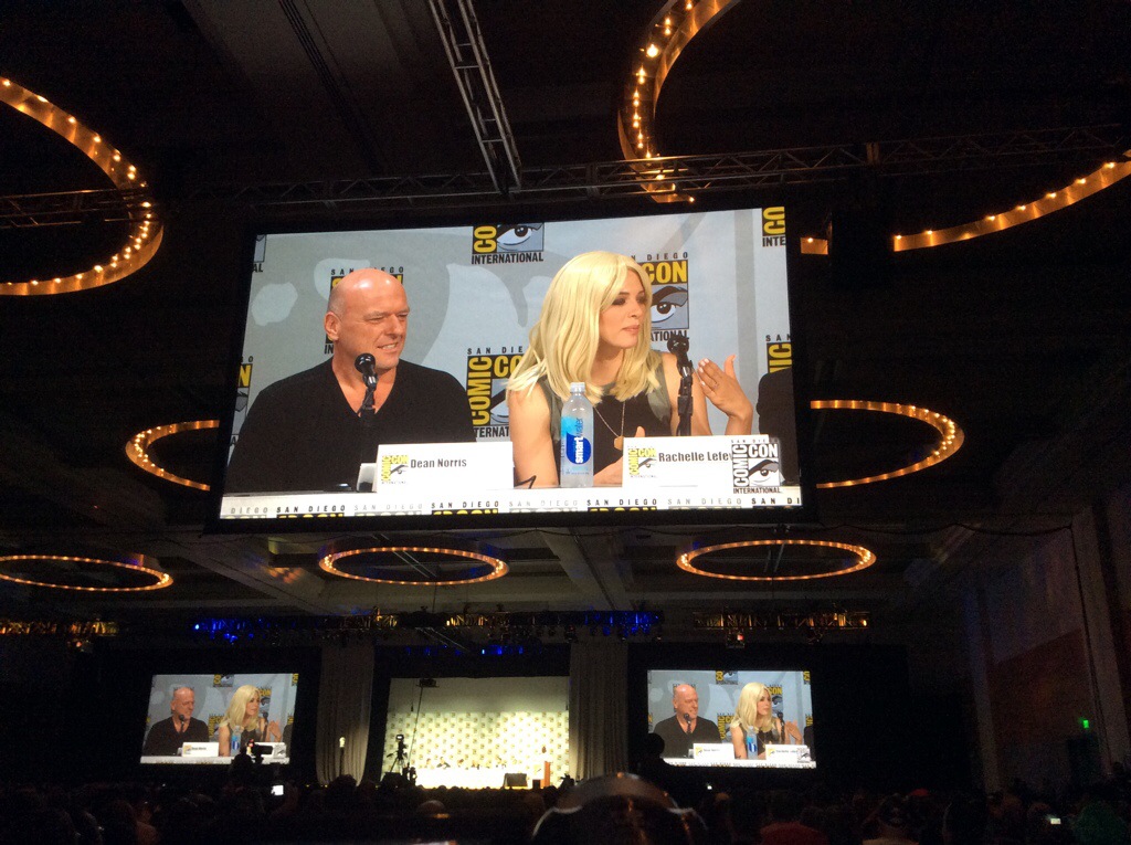 At the Under the Dome panel, two stars came dressed for San Diego Comic Con 2014. Rachelle Lefevre (Julia) came out dressed as Battlestar Galactica’s Starbuck and I have no clue what Alexander Koch (Junior) came dressed as.
