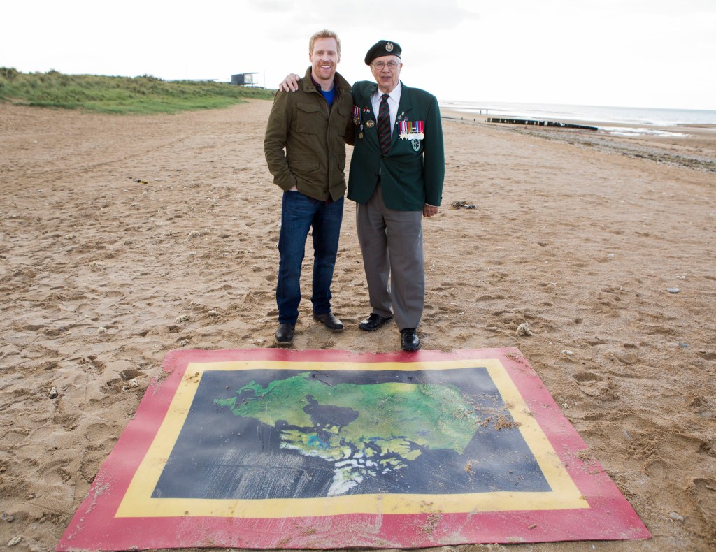 Now its the serious bit. Time to pay your respects, not just the racers, but all of us. There is a reason why we use the term Lest We Forget. After tears from all teams, and I’ll admit me, teams must deliver a poppy to the soldier in front of the Juno Beach Centre. Despite the tears for the fallen, I don’t think there will be any tears because of the race. I’m betting on non-elim leg this time. Not a good place for it. You can’t have teams racing to get through the cemetery. In the end, it’s the Olympians back in first, the mat right on Juno Beach with a D-Day veteran to great them. Wow, that’s fantastic.