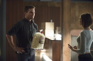 Arrow — “The Secret Origin of Felicity Smoak” — Image AR305b_0181b — Pictured (L-R): Stephen Amell as Oliver Queen and Willa Holland as Thea Queen — Photo: Cate Cameron/The CW — é2014 The CW Network, LLC. All Rights Reserved.