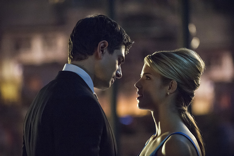 Arrow — “Draw Back Your Bow” — Image AR307b_0456b — Pictured (L-R): Brandon Routh as Ray Palmer and Emily Bett Rickards as Felicity Smoak — Photo: Cate Cameron/The CW — é 2014 The CW Network, LLC. All Rights Reserved.