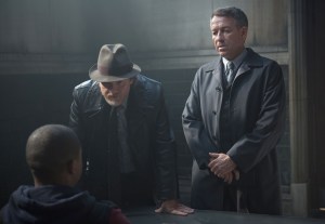 GOTHAM: Detective Harvey Bullock (Donal Logue, C) and Alfred Pennyworth (Sean Pertwee, R) interview a suspect with information on Bruce and Selina’s whereabouts in the “Lovecraft” episode of GOTHAM airing Monday, Nov. 24 (8:00-9:00 PM ET/PT) on FOX. ©2014 Fox Broadcasting Co. Cr: Jessica Miglio/FOX