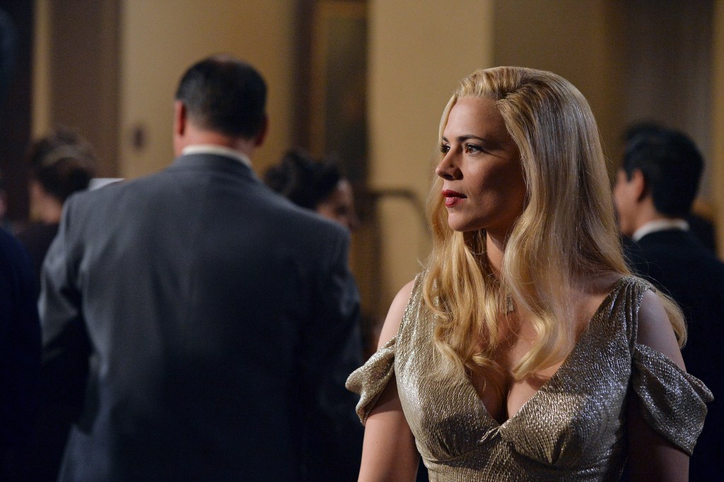 Carter sets to work to find the formula and throws Sousa off the scent of Stark and learns from him that Dooley, Thompson (Chad Michael Murray) and Krzeminski (Kyle Bornheimer) have found out that Spider Raymond is buying the formula and plan their mission to invade his club. Carter manages to listen in on the planning and meeting on the pretext of serving them coffee. When Dooley asks her to leave, Thompson, a chauvinistic pig, says that Carter can stay so she can learn something. What we learn from this meeting, that Carter takes away is that Raymond likes blondes.