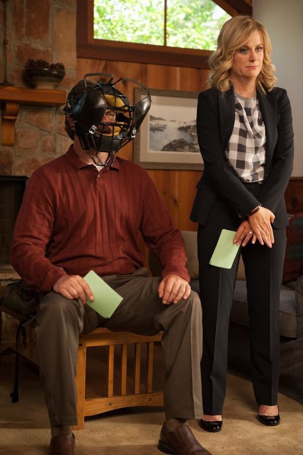 PARKS AND RECREATION — “Ron and Jammy” Episode 702 — Pictured: (l-r) Nick Offerman as Ron Swanson, Amy Poehler as Leslie Knope — (Photo by: Colleen Hayes/NBC)