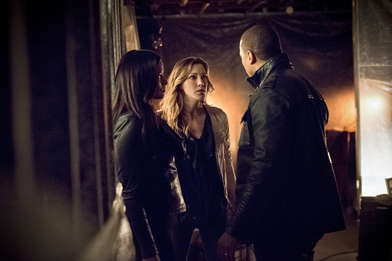 Arrow — “Al Sah-Him” — Image AR321A_0024b– Pictured (L-R): Katrina Law as Nyssa Al Ghul, Katie Cassidy as Laurel Lance and David Ramsey as John Diggle — Photo: Dean Buscher/The CW — é 2015 The CW Network, LLC. All Rights Reserved.