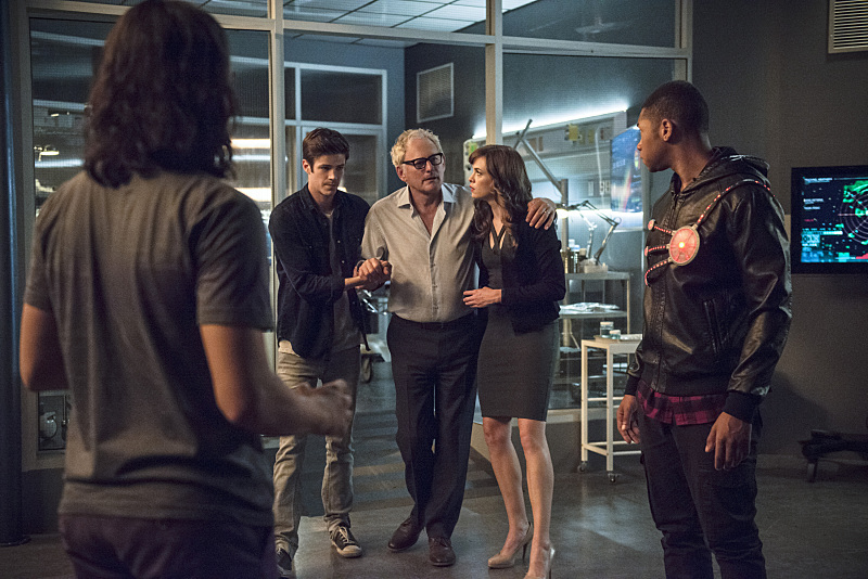 You see Harrison from Earth-2, leaves STAR Labs to steal a weapon from Mercury Labs. Dr. McGee calls in Joe and Patty and tells the two that Harrison Wells was the thief and he was walking. Patty wants to call in Barry but Joe says no because Wells killed his mom and tells her not to tell Barry.