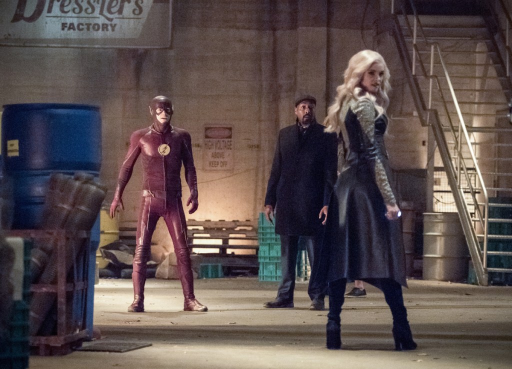 The Flash, Joe and Tracy go to a warehouse where Killer Frost is holding Cecile. Cecile is fine and Killer Frost appears and says she isn’t interested in killing Cecile but Tracy. The Flash tries to talk to Caitlin and convince her not to hurt anyone. However, each time Barry speaks, Killer Frost speaks the same lines back at him at the same time. Killer Frost mentions that Savitar always knows what is going to happen because he has lived it. Killer Frost also knows that Cisco is in the rafters and sets off an explosion to bring it down. Cisco vibes portals to land him safely. We then get a Vibe versus Killer Frost showdown that Vibe wins allowing him to take a sample of her blood. However, Savitar arrives. Instead of killing Tracy, he snatches Killer Frost and speeds off.