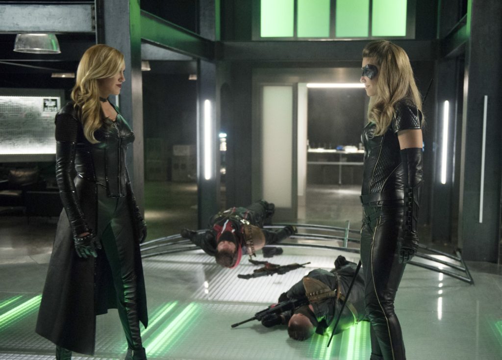 Eventually the team manages to track down Black Siren and her thugs. When Team Arrow goes to confront them, we get Canary versus Canary that ends in a stalemate. There is a moment where Diggle is unable to fire his gun that results in Rene being thrown off a bridge that Oliver has to grab him. Unfortunately, when two crash down on a hood of a car, Rene is badly hurt.