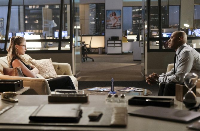 In James’ office, Kara is struggling at being seen as a God but he points out that there is nothing wrong in people having someone to believe in. When Kara shows James’ the Kryptonian artifact, it turns on and a hologram appears. Kara knows what it is and gets Winn to track Betahedron signature. Apparently this relates to a Kryptonian probe that is sent out to teach people about Krypton. And Coville has this Betahedron in his possession.