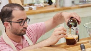 Pi Pie with coffee custard and salted caramel. Didn’t turn out how he wanted it to. Luckily for James, Rochelle and Bruno loved the flavour.
